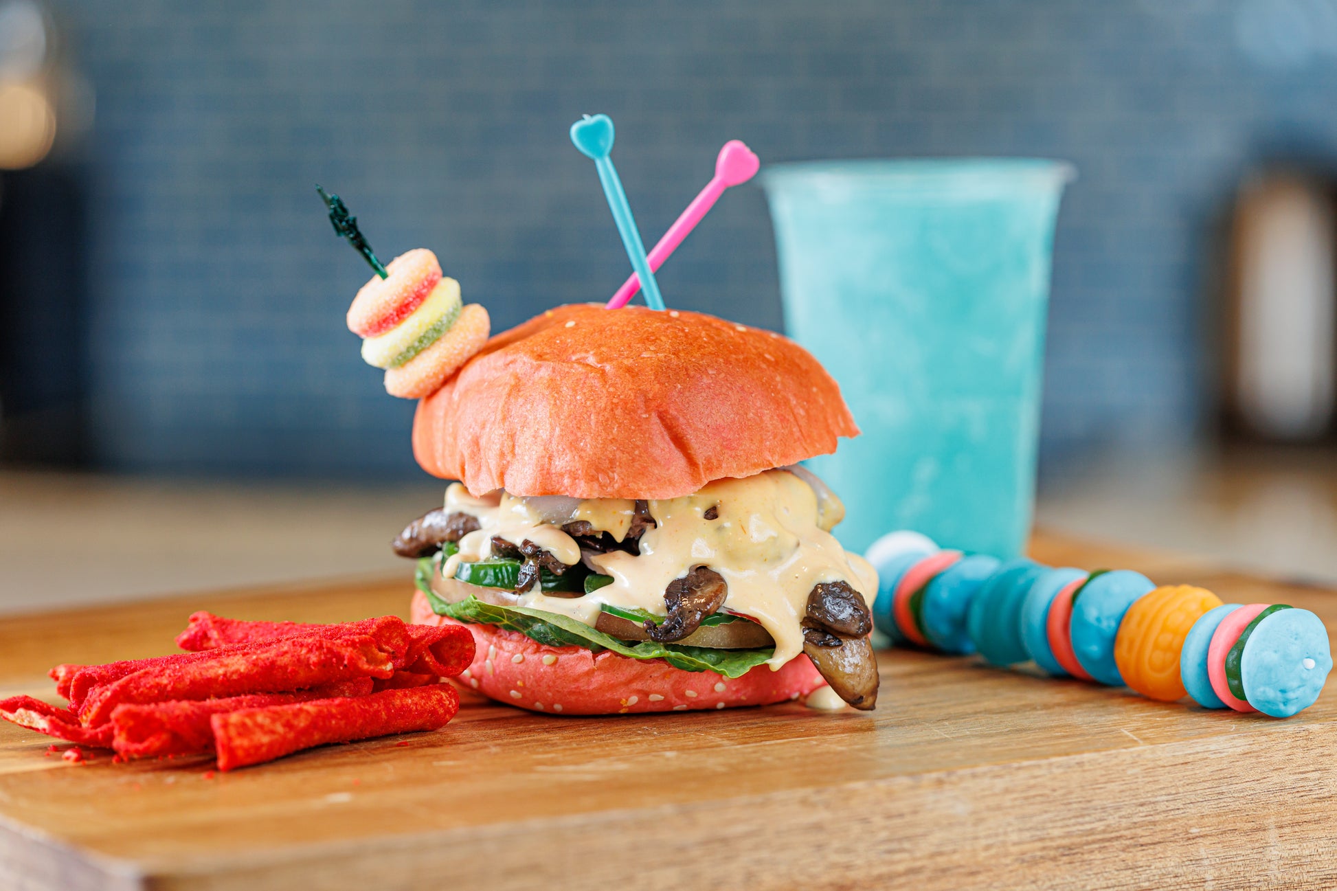 The Orange Fun-Burger - a delicious and playful twist on the traditional cheese burger. Combining the classic flavors of juicy beef and melty cheese with vibrant, eye-catching buns, this burger is sure to add a pop of color and fun to your meal. Experience the perfect balance of flavor and fun with every bite.